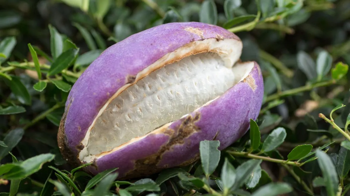 ¿Cómo es? La Akebi es considerada un manjar de temporada en Japón y su aspecto es de lo más llamativo con una corteza gruesa de color morado y una pulpa blanquecina traslúcida, melosa y llena de pepitas en su interior.