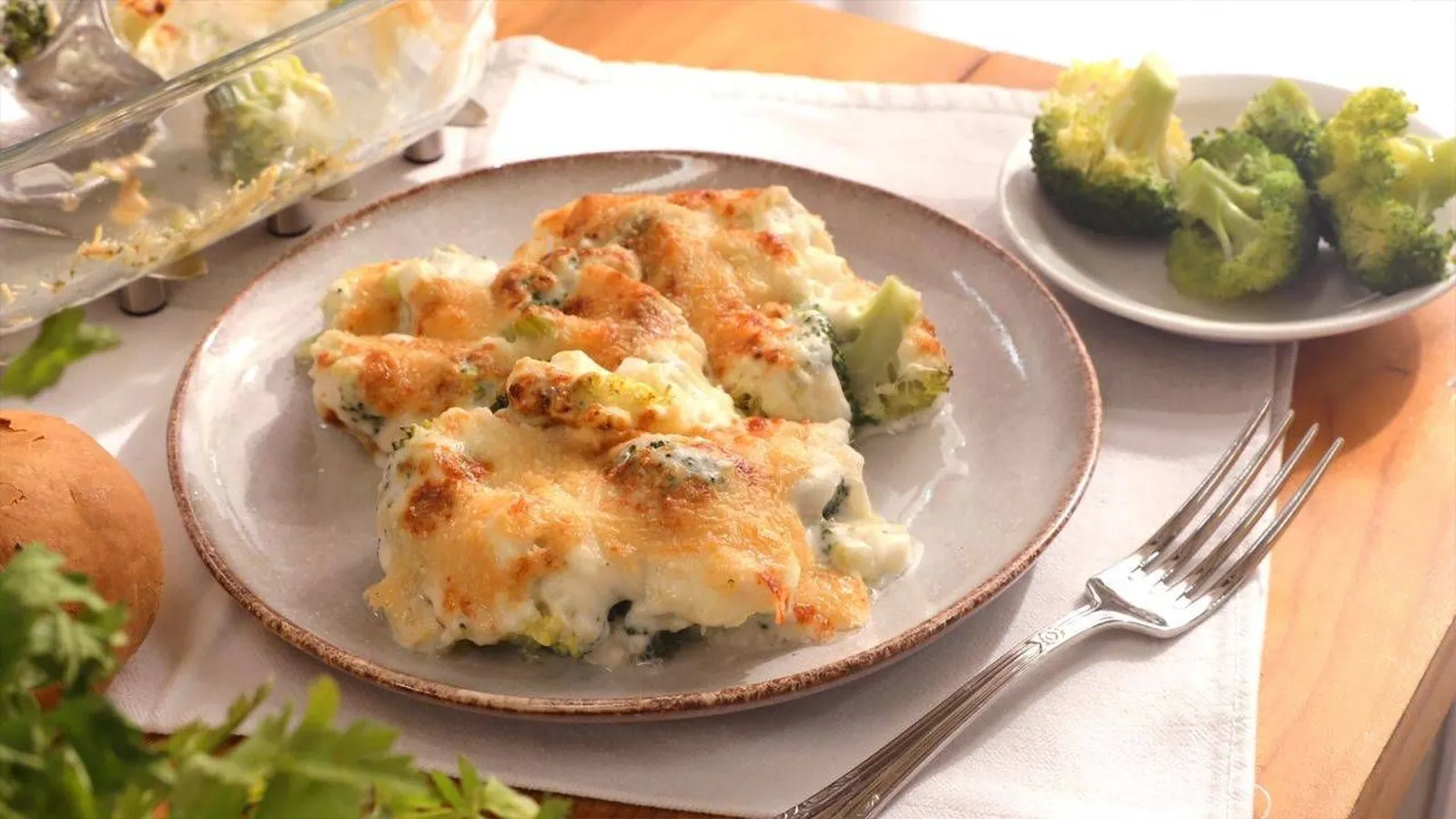 Brócoli gratinado con bechamel al horno