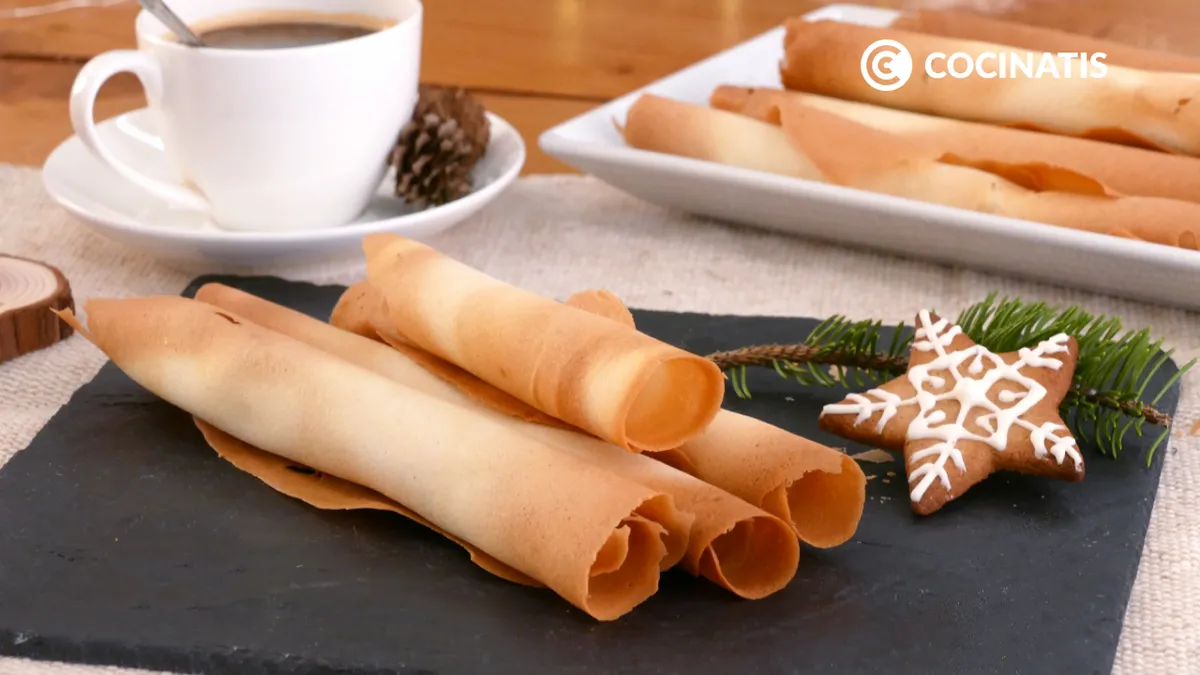 Sirve los barquillos caseros para Navidad y sorprende a todos con el clásico dulce que todos conocemos ¡hecho en casa! Podéis sumergir parte de los barquillos en chocolate fundido y dejarlo enfriar para hacerlos más irresistibles todavía.