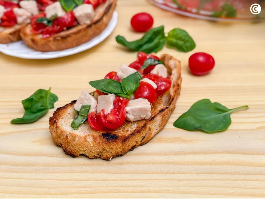 Se trata de una combinación sencilla en la que destacan el contraste de sabores y texturas. Se basa prácticamente en una rebanada de pan tostado acompañada con una mezcla fresca de ingredientes que suelen incluir tomate, ajo, albahaca y aceite de oliva.