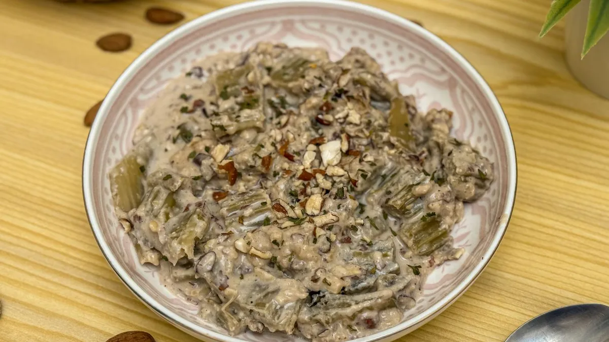 Sirve el cardo con almendras recién hecho y disfruta de este sabroso y cremoso plato de verdura, ¡con una salsa de textura y sabor espectaculares!