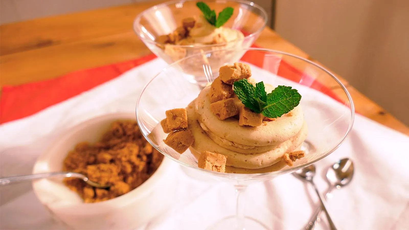 Prepara este sencillo y elegante postre de crema de turrón para celebrar las Navidades con las mejores recetas. Una manera muy sencilla de innovar con los dulces más tradicionales que podemos aprovechar para disfrutar solo o como parte de otras recetas navideñas (como relleno o decoración) de bizcochos o tartas como son el esponjoso bizcocho de mazapán y suave tarta mousse de turrón a la que no os podreís resistir.