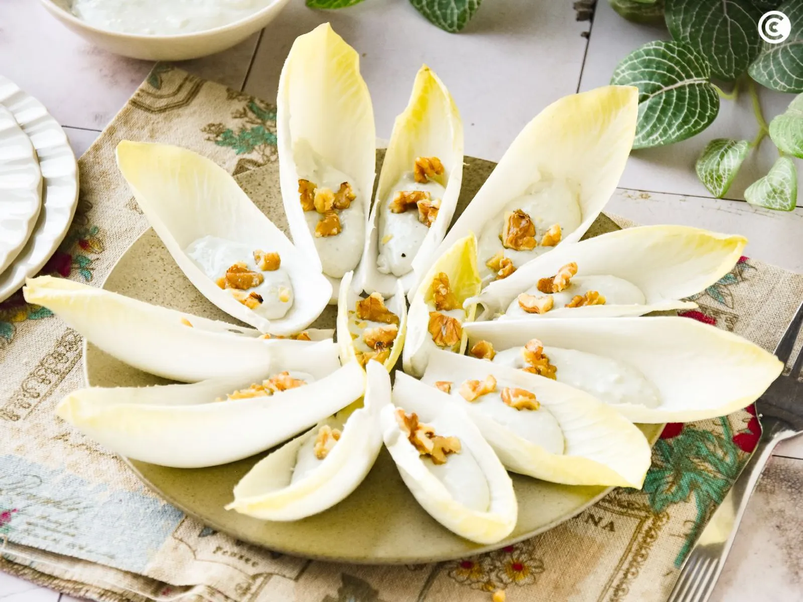Una receta fácil y original de endivias crujientes con crema de roquefort y nueces