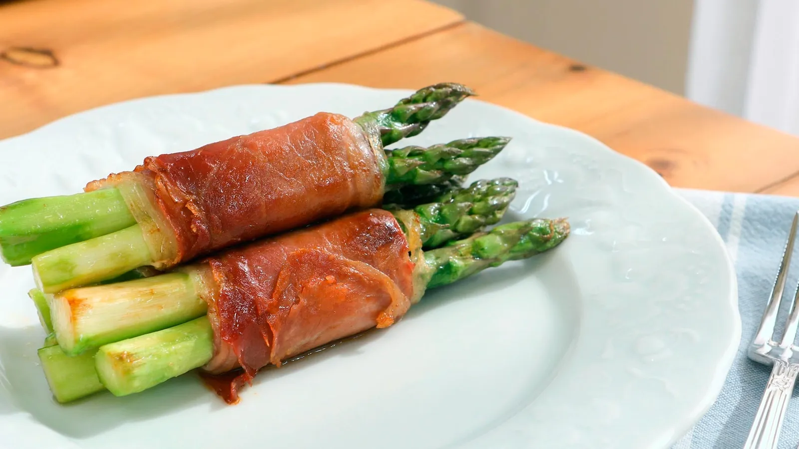 Una rápida y sencilla tapa o aperitivo elaborada con espárragos y jamón.