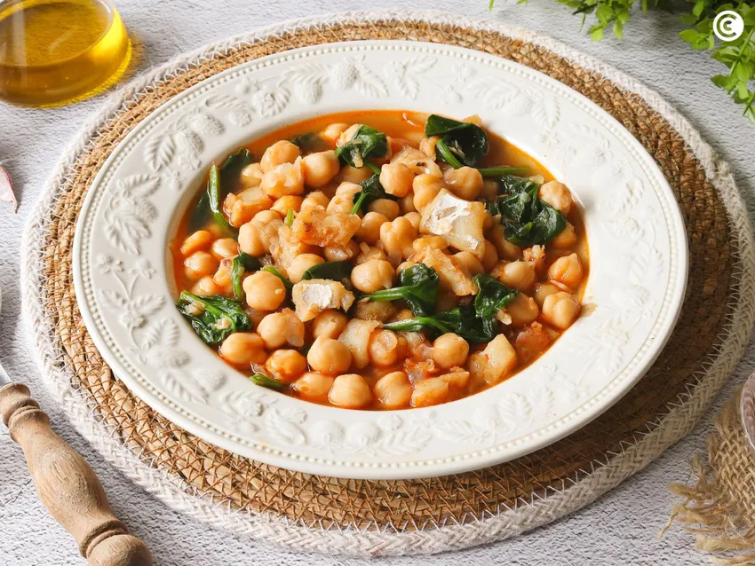 Un plato de cuchara reconfortante con legumbres y pescado ideal para comidas caseras saludables