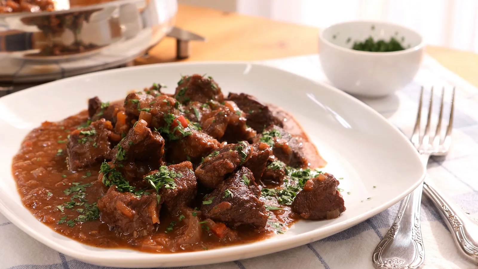 El Gulash o goulash es un estofado especiado de carne de ternera elaborado a fuego lento. Un plato tradicional de la cocina húngara muy sabrosa en la que combinamos la carne con verduras, especias y una salsa muy especial con vino blanco y tinto.