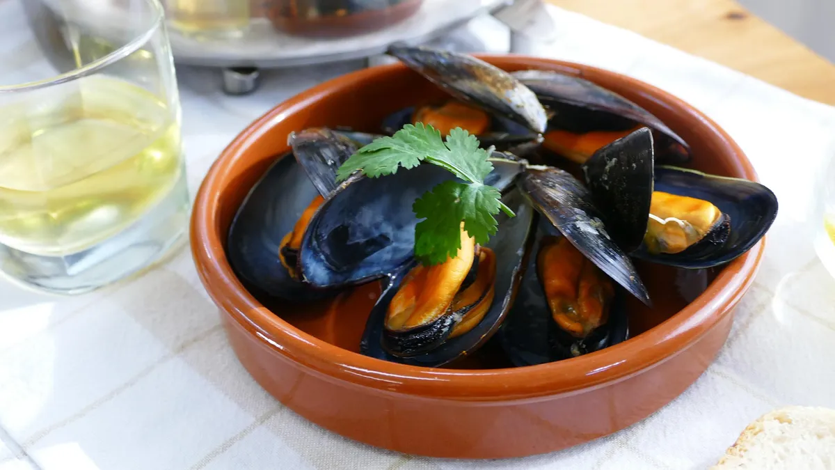 Cuando se abran los mejillones retira la cazuela del fuego.