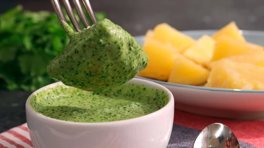 Sirve el mojo verde, perfecto para acompañar platos como unas receta de papas arrugadas o combinar con otras salsas como mojo rojo canario.