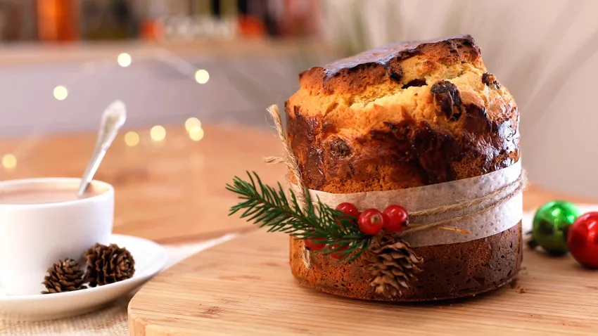Sirve el panettone, el pan dulce italiano de Navidad.