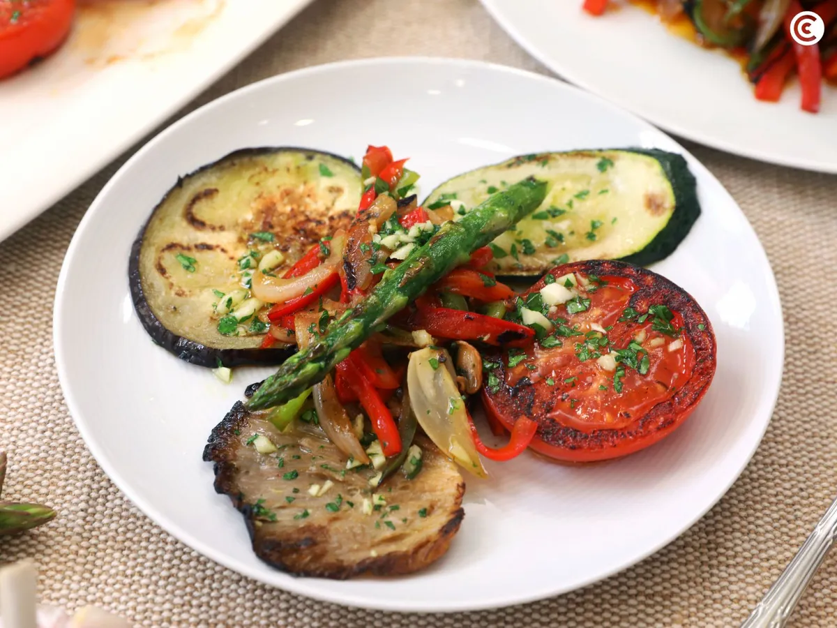 Sirve la parrillada de verduras para disfrutar sola o como guarnición de carnes y pescados. ¡Esta buenísima!