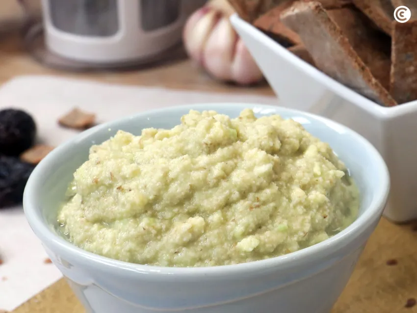 Para un sabor más suave, se puede escaldar el ajo unos segundos antes de picarlo o directamente reducir su cantidad si prefieres un paté menos intenso. Según cómo preparemos el ajo aportará un sabor más o menos intenso.